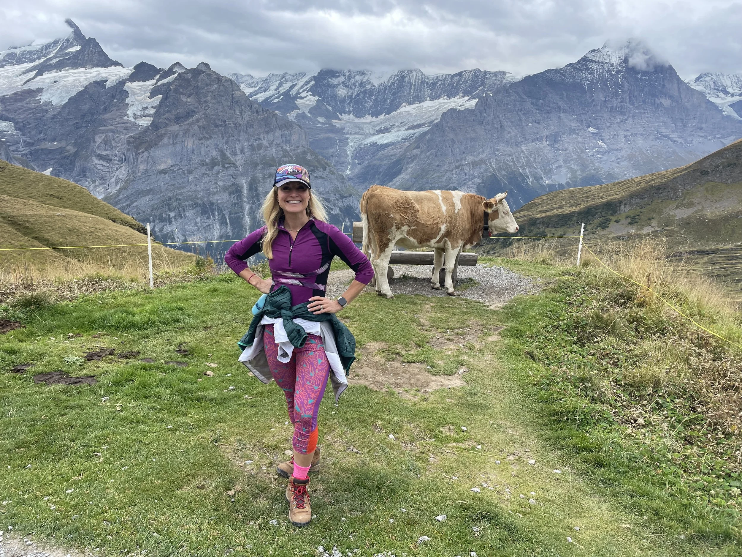When you get to the top you choose the Bachalpsee trail which is roughly 1.5 miles to a freezing cold lake with beautiful views and cows with bells around their neck everywhere!